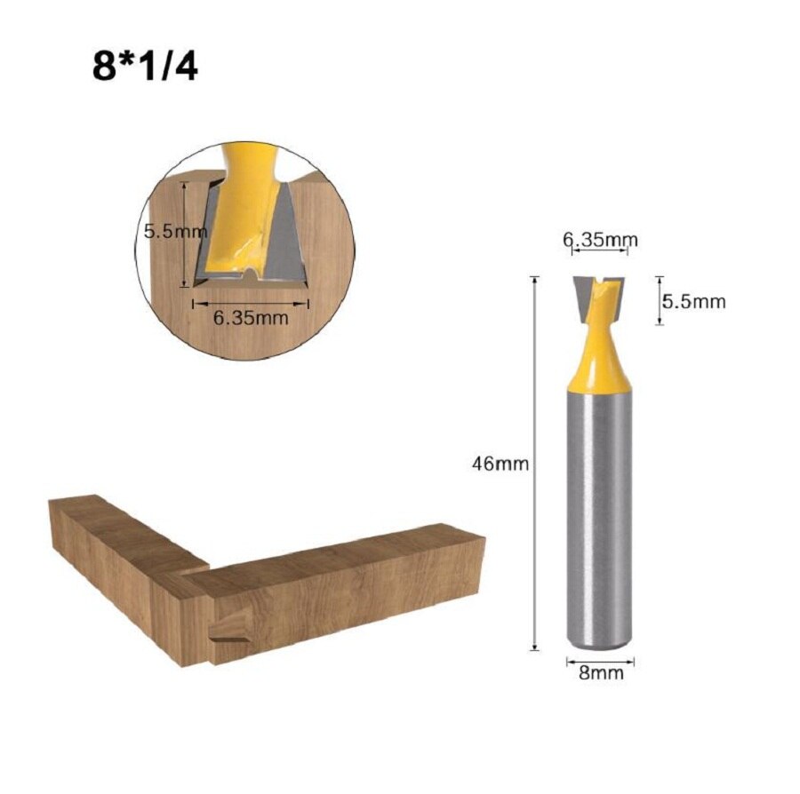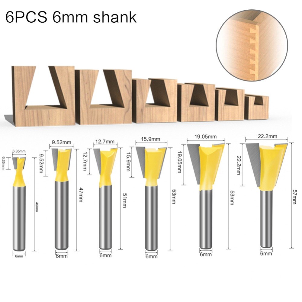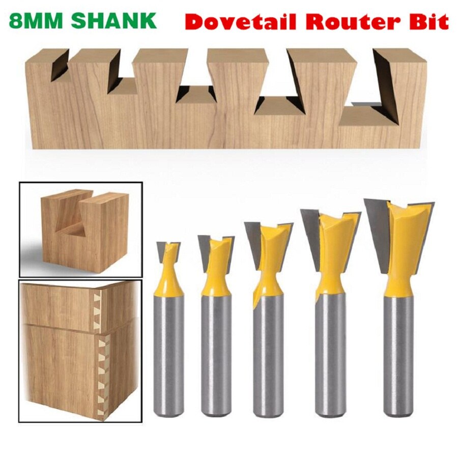1/5/6Pcs 6mm/6.35mm 8MM Shank Dovetail Milling Cutters C3 Grade Tungsten Router Bits For Wood Carving Woodworking Tools