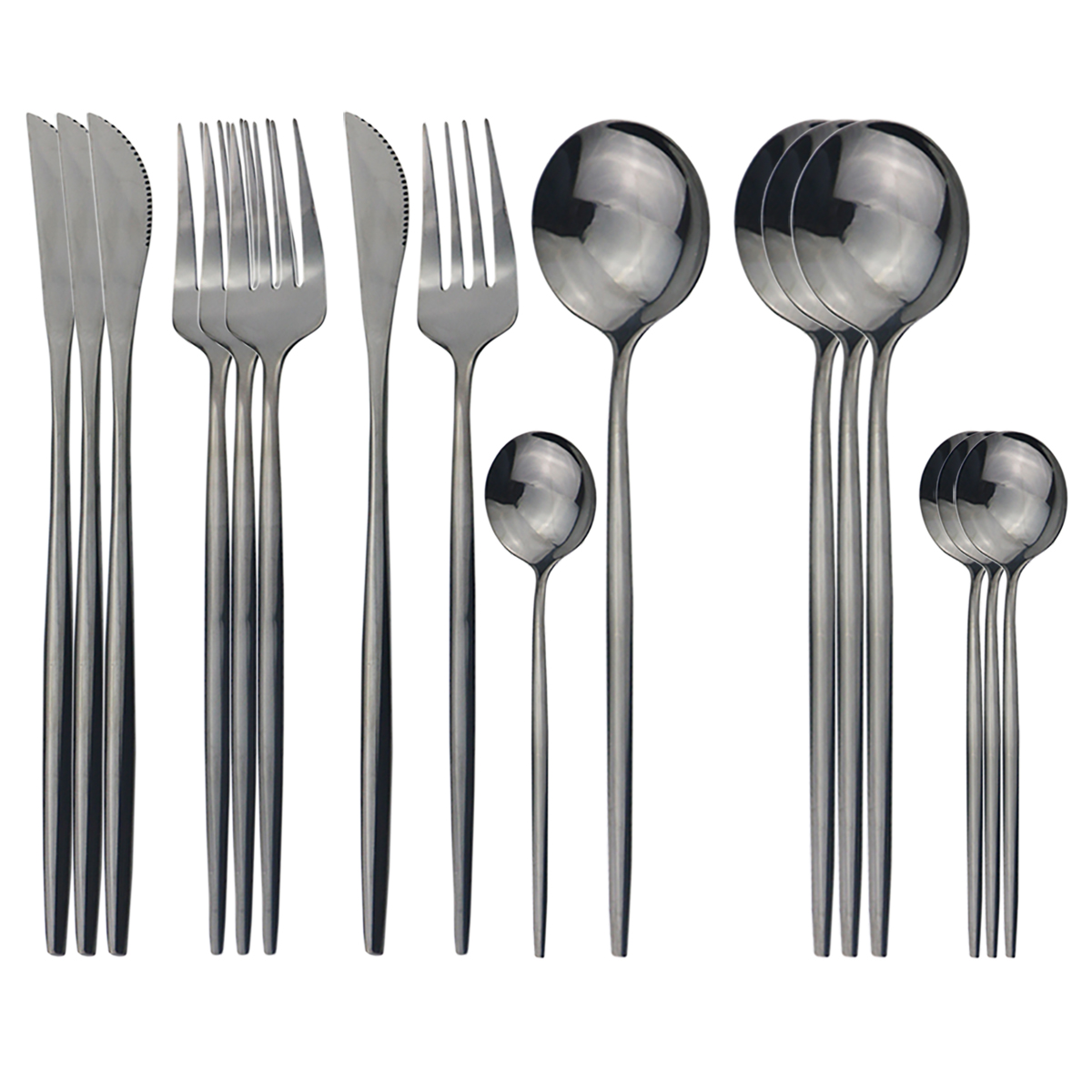 16Pcs/Set Dinnerware Set Black Cutlery Set 304 Stainless Steel Flatware Set Knives Fork Spoon Kitchen Party Tableware Silverware
