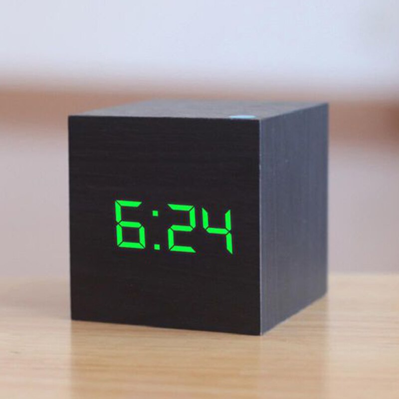 1PC Modern Wooden Cube USB Voice Digital Alarm Clock Digital Alarm LED Display Despertador Luminous Control Clock