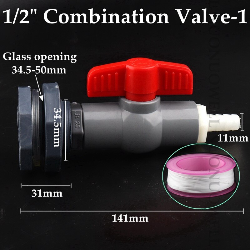 1Set 1/2"1" Combination Valve Aquarium Pagoda Connector Fish Tank Drain Joint Aquarium Hose Drainage Accessories Valve Assembly