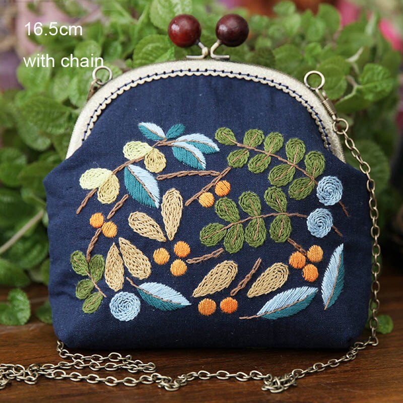 3D DIY Ribbon Embroidery Bag Set, Needlework Kits Cross Stitch Chain Bag with Hoop,Handmade Swing Purse Wallet