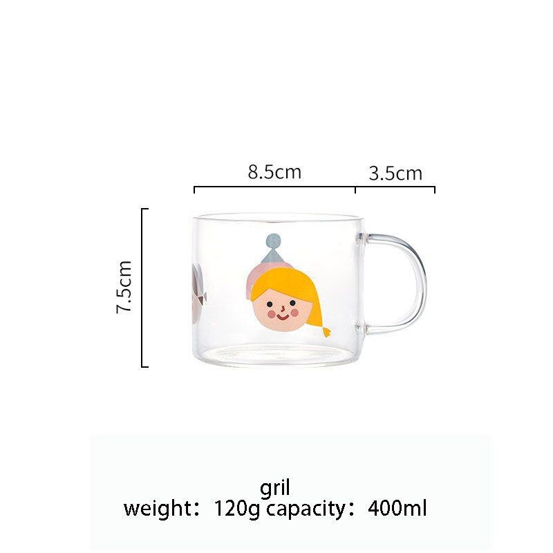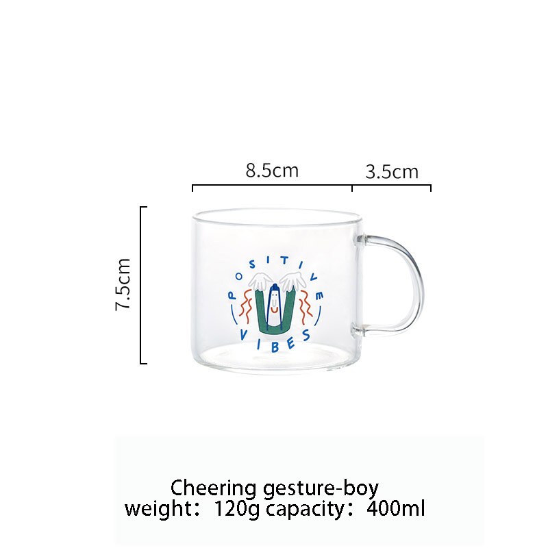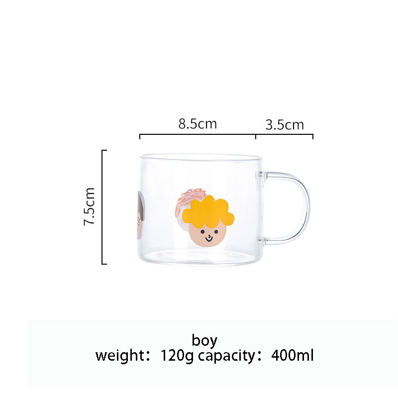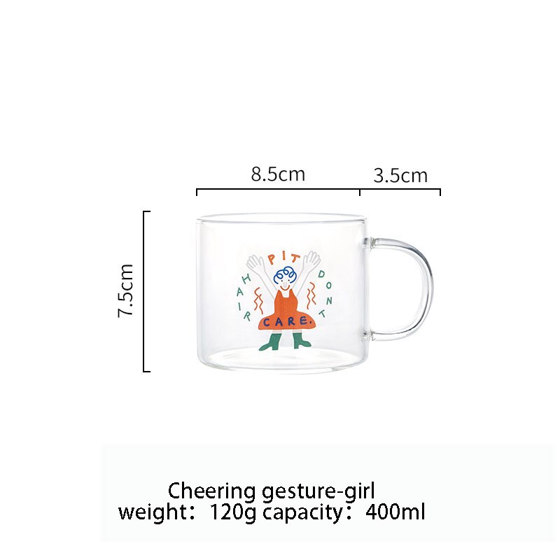 400ml Alphabet Cartoon Heart Pattern Mug Glass Handle Mugs For Milk Coffee Beer Home Office Drinnkware Water Cup Couple