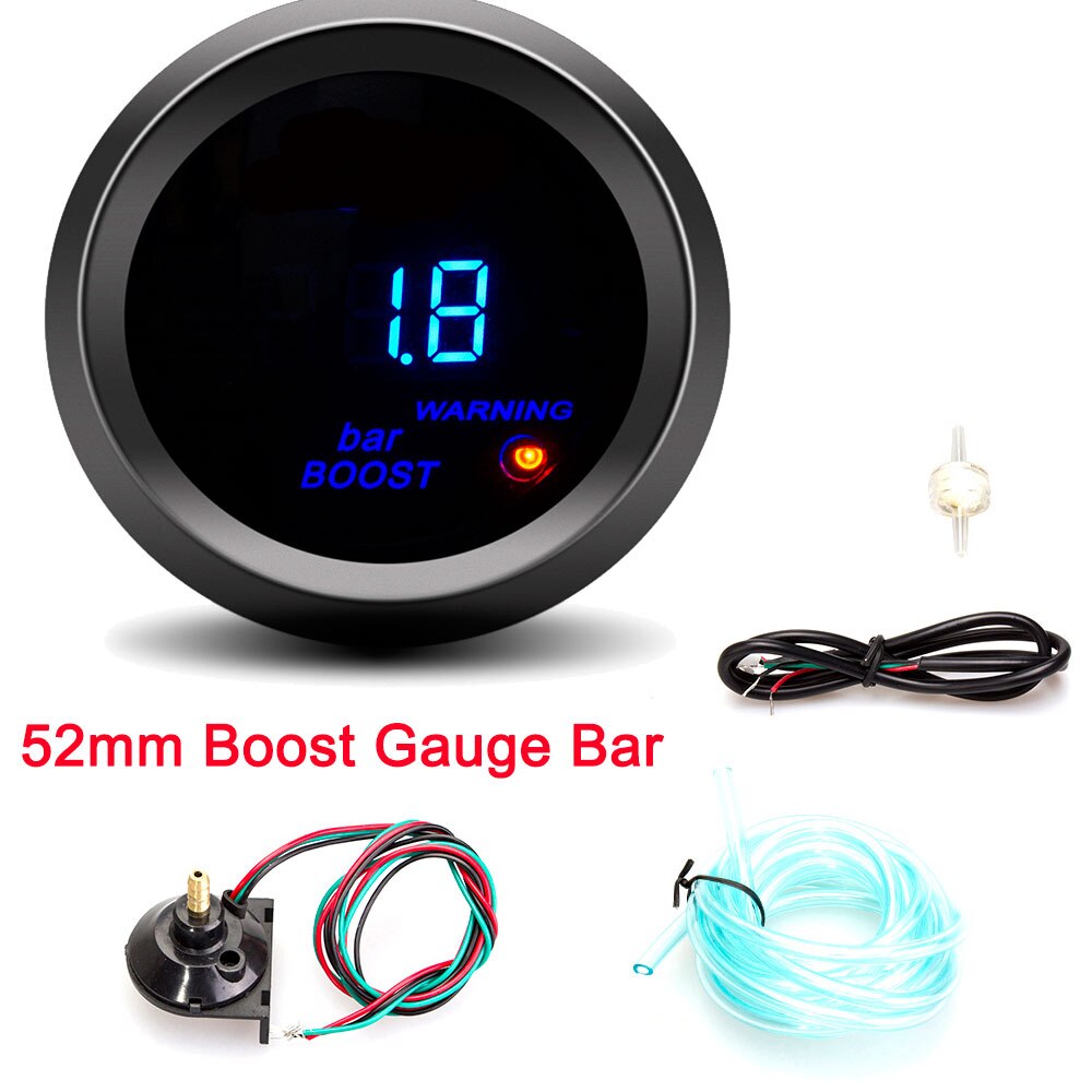 52mm Car Digital Tachometer Turbo Boost Gauge PSI BAR Water Temp Oil Temp Oil Pressure Gauge Voltmeter Rpm Meter Warning Light