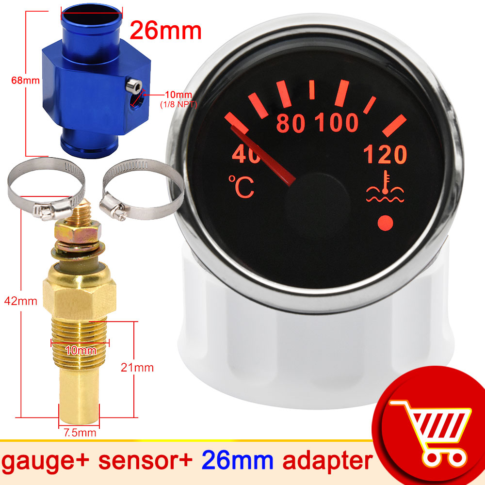 52mm Water Temp Gauge with Alarm Light 40-120℃ Truck Moto Car Temperature Sensor 10mm Water Coolant Temperature Sensors Adapter