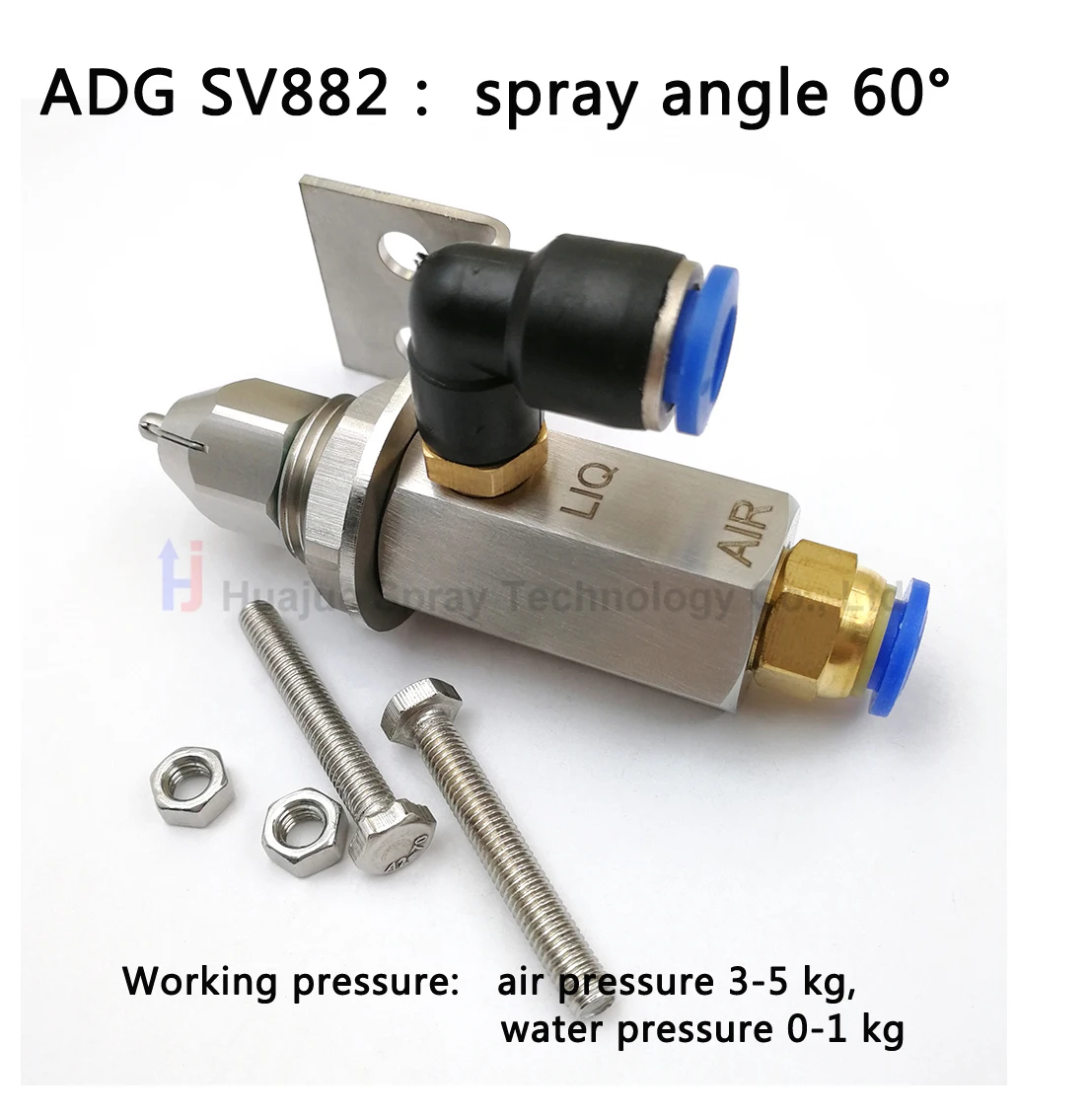 Air Atomizer Spray Nozzle, Ultrasonic Dry Fog, Super Fine Mist Atomizing, Dust Removal, SS304 Stainless Steel,