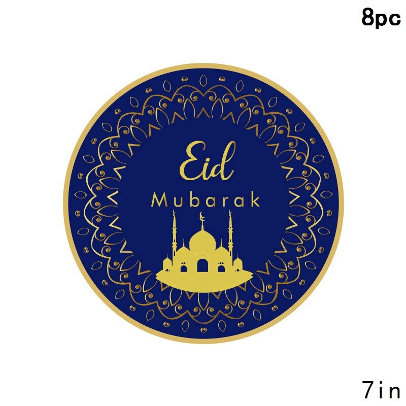 Blue Eid Mubarak Disposable Tableware Serves 8 Guests Aid Mubarak Plate Napkins Happy Eid Mubarak Party For Eid Al-Fitr