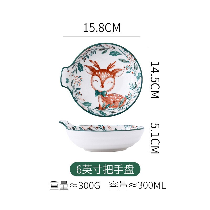 Cartoon Ceramic Kids Plate Set Dinning Food Deer Restaurant Nordic Plates Dinner Serving Platos De Cena Home Tableware DL60PZ