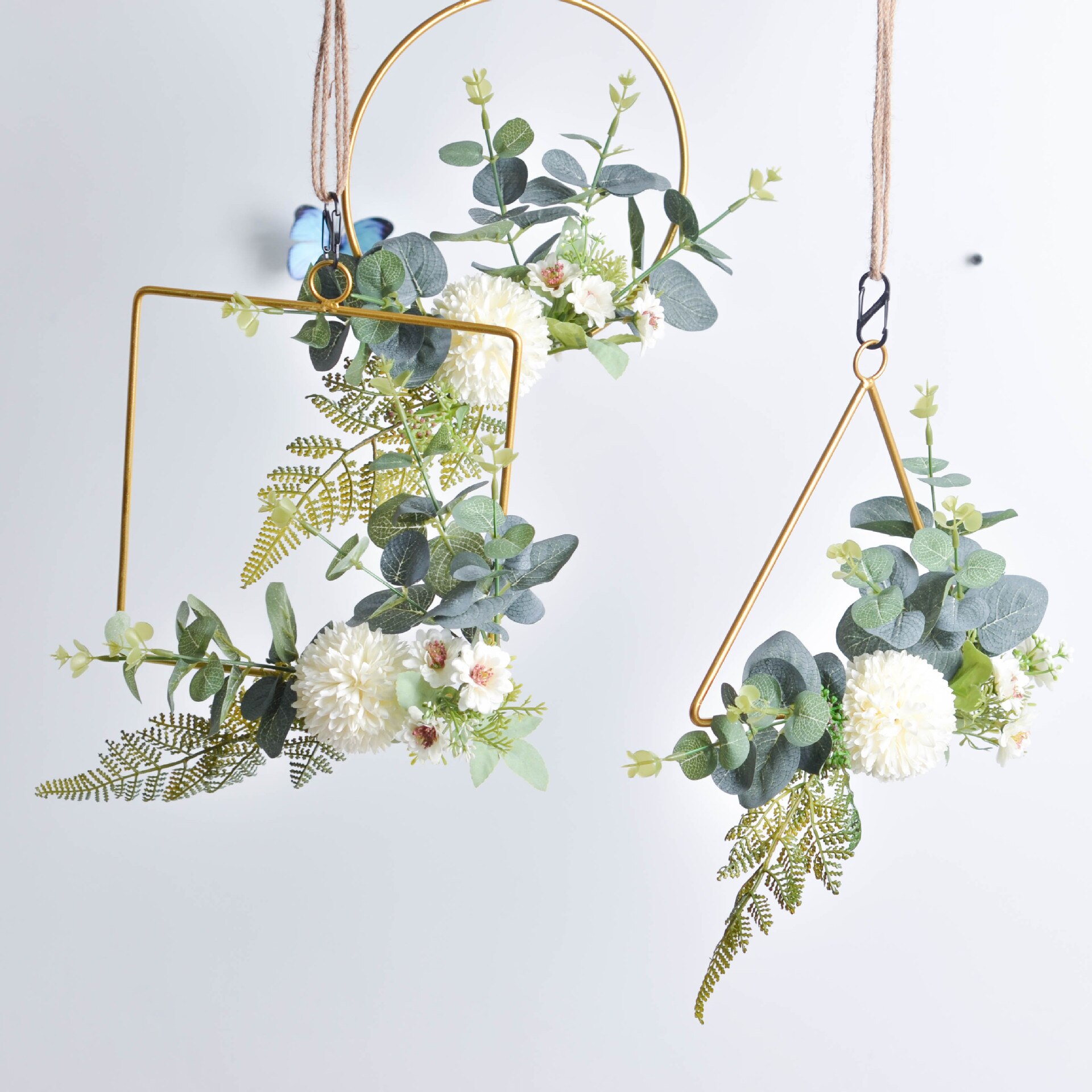 Cilected Floral Hoop Wreath Geometric Wire Round Triangle Square Hoop Frame Of Artificial Flower For Wedding Backdrop Wall Decor
