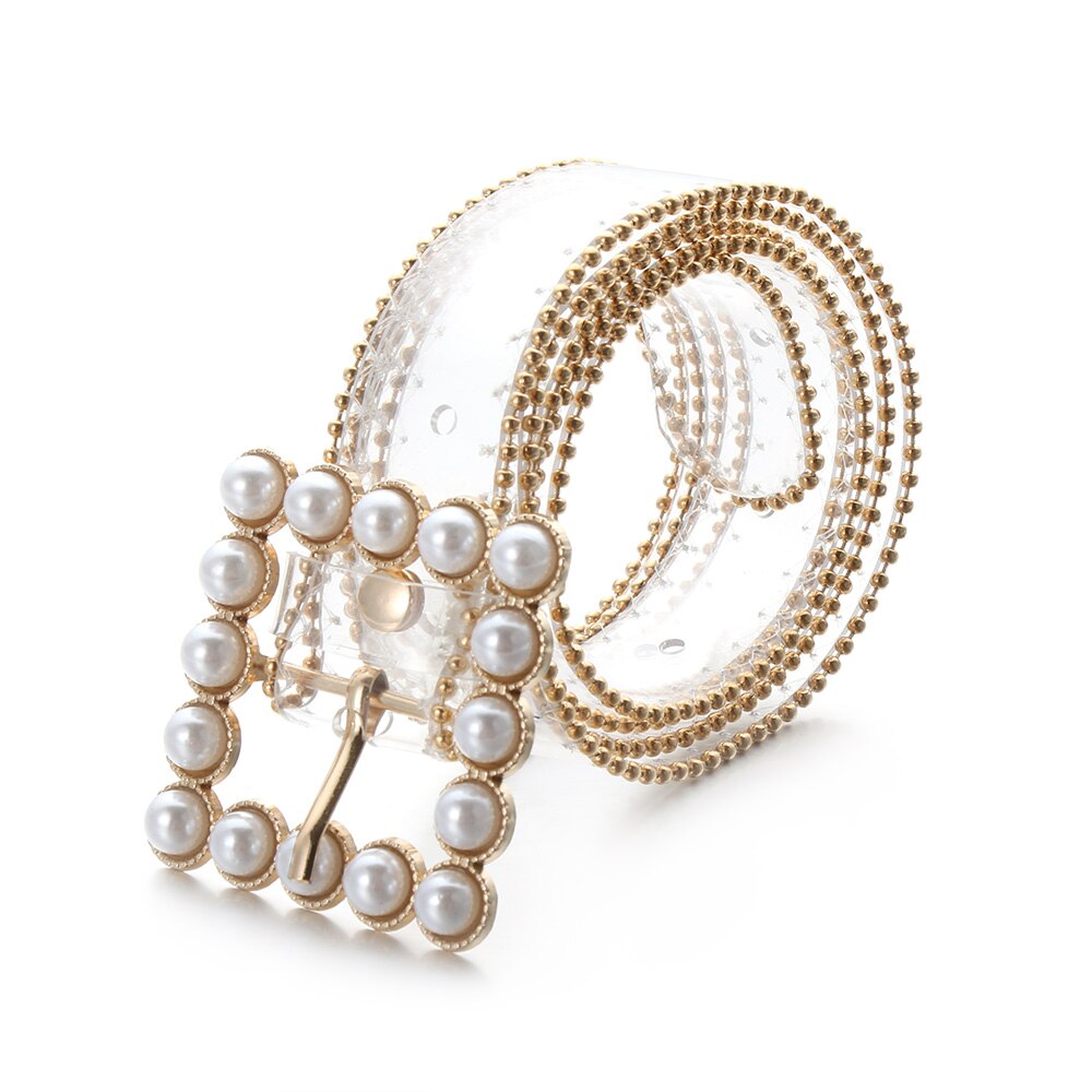 Clear Belt Diamond Pearl Waist Belts Versatile PVC Transparent Plastic Waist Strap Adjustable Decorative Waistband