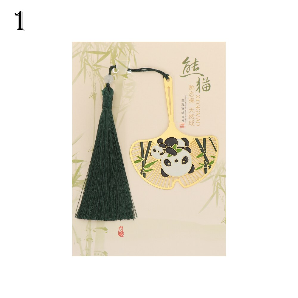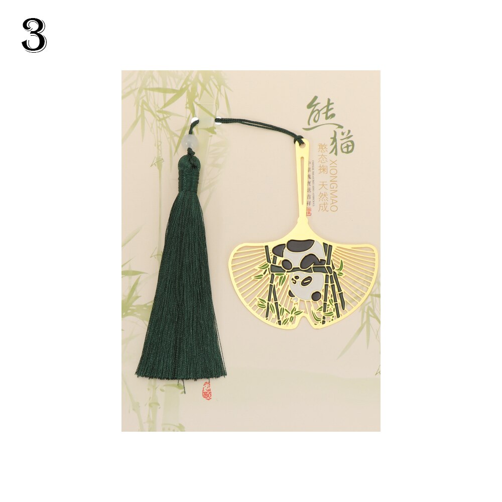 Cute Popular Retro Chinese Style Metal Bookmark Panda Pendant Hollow Bookmark Book Tassel Pagination Mark Stationery Supply