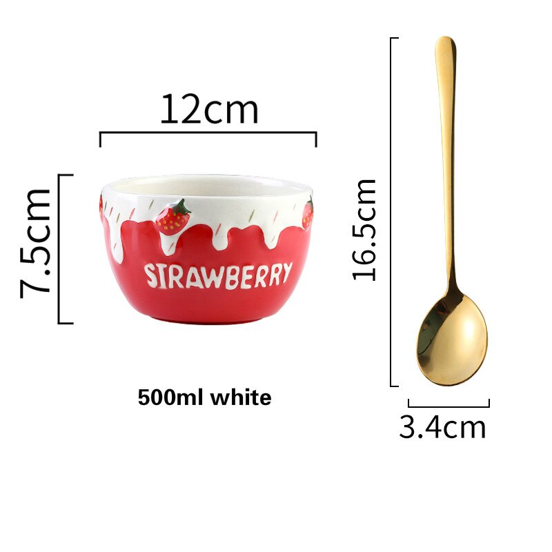 Cute Strawberry Ceramic Bowl Fruit Salad Bowl Yogurt Dessert Bowl Ins Tableware Rice Bowl Single Oatmeal Breakfast Bowl