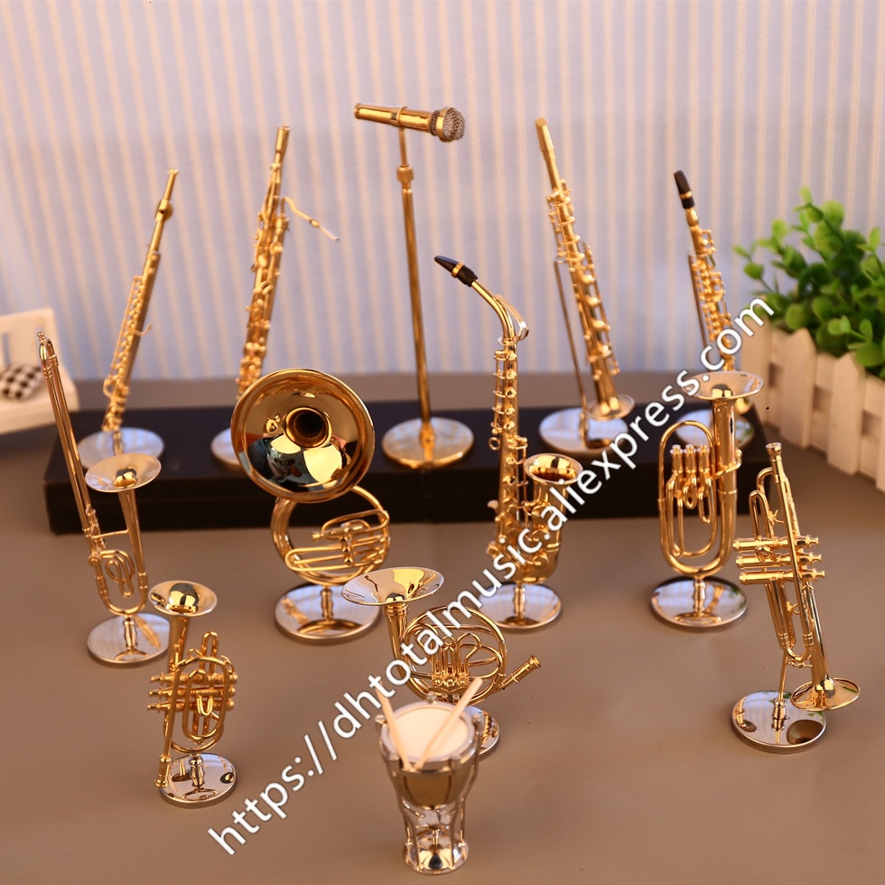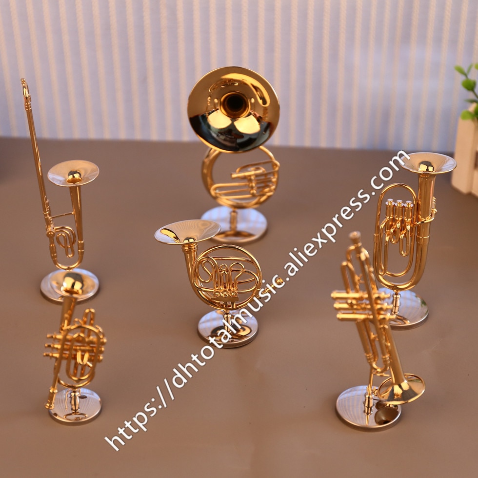 Dh Miniature Flute Clarinet Saxophone Trumpet Trombone French Horn Model Mini Musical Instrument Ornaments and Decoration