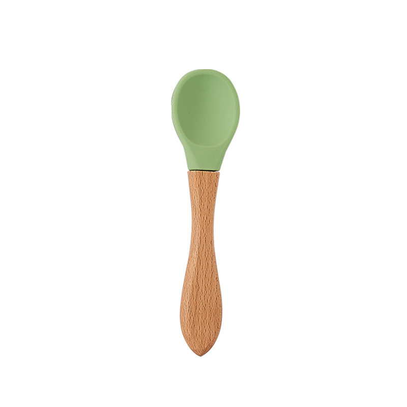 Feeding Wooden Handle Silicone Spoon For Baby Utensils Eat Soild Food Kids Training Manipulative Ability Children's Tableware