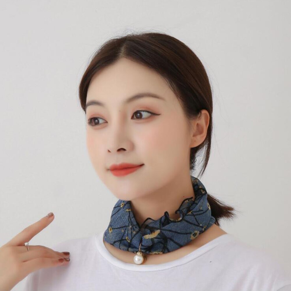 Floral Neck Ring Scarf Chiffon Collar Tie Women Muslim Hijab Hat Indian Turban Solid Lady Office Neckerchief Skinny Hair Scarves