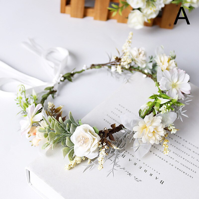 Flower Headband Spring Bohemian Flower Crowns Floral Garland Faux Rose Wedding Wreaths Braided Hair Vine Headpiece Hair Ornament