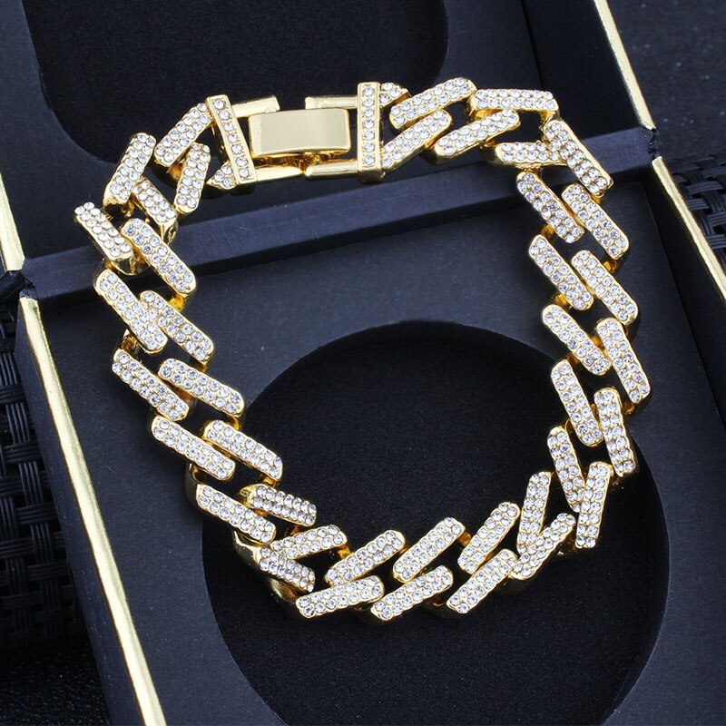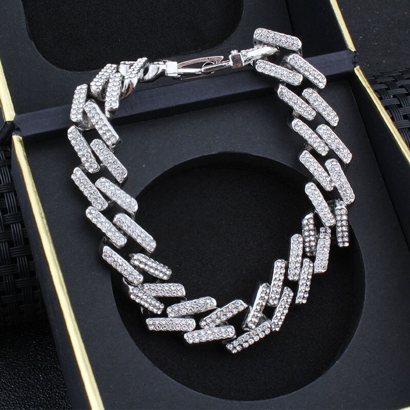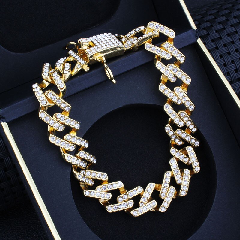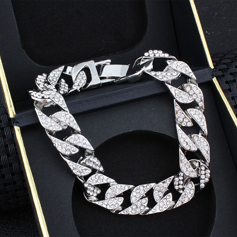 Hip Hop Bling Iced Out Men's Rapper Bracelet Full Rhinestone Pave With Miami Cuban Link Chain Bracelet for Men Jewelry
