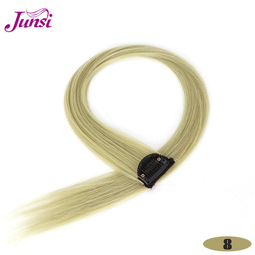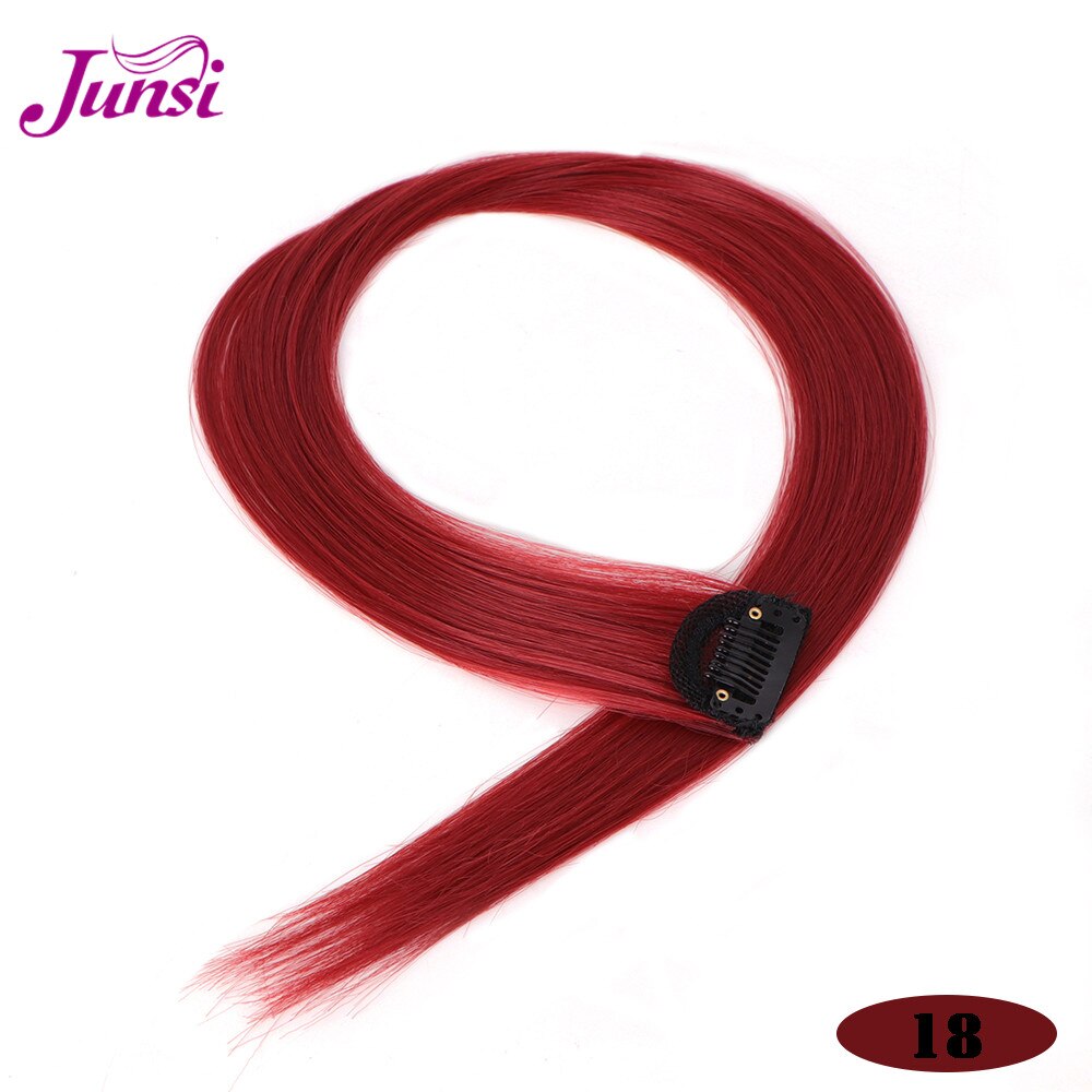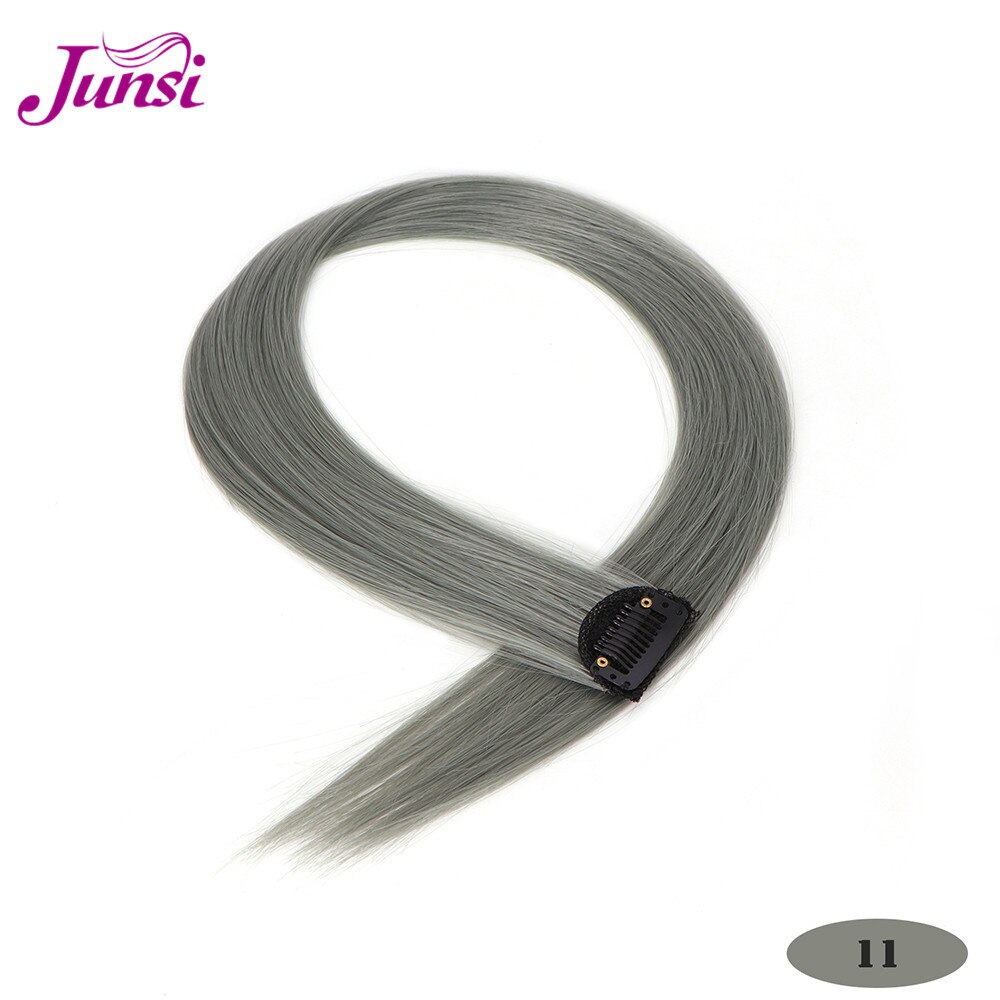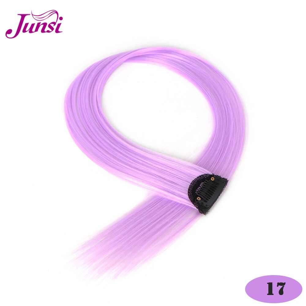 JUNSI Colored Hair Strands Hair Extension Long Straight Female Rainbow Hair Pieces A Clip Heat Resistant Synthetic Bundles