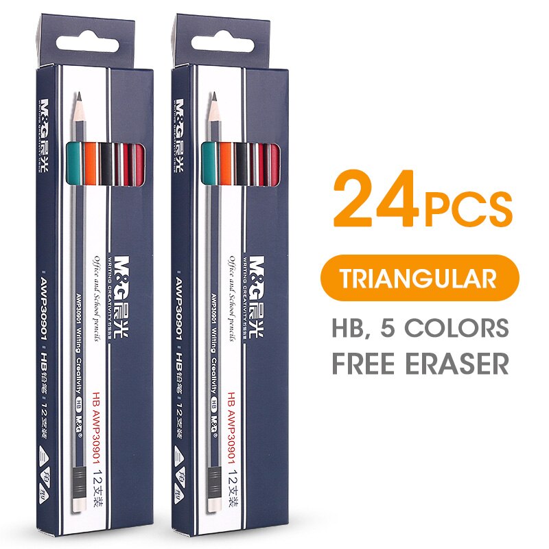 M&G 12/24/48/120pcs Triangular HB Wood Pencil with Eraser Pre-Sharpened Lead Pencils Graphite Pencil for school supplies kids