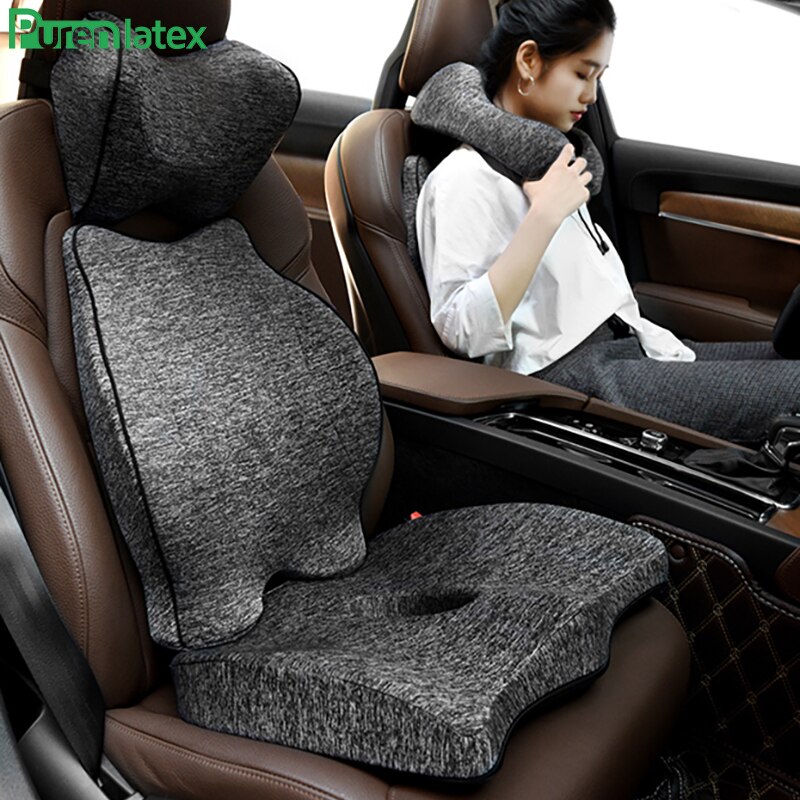 Purenlatex Auto Seat Cushion Memory Foam Orthopedic Pillow for Office Car Pad and Coccyx Cushion for Sciatica & Back Pain Relief