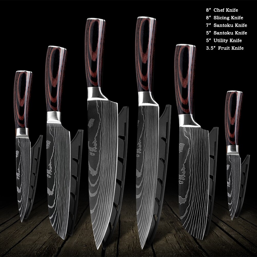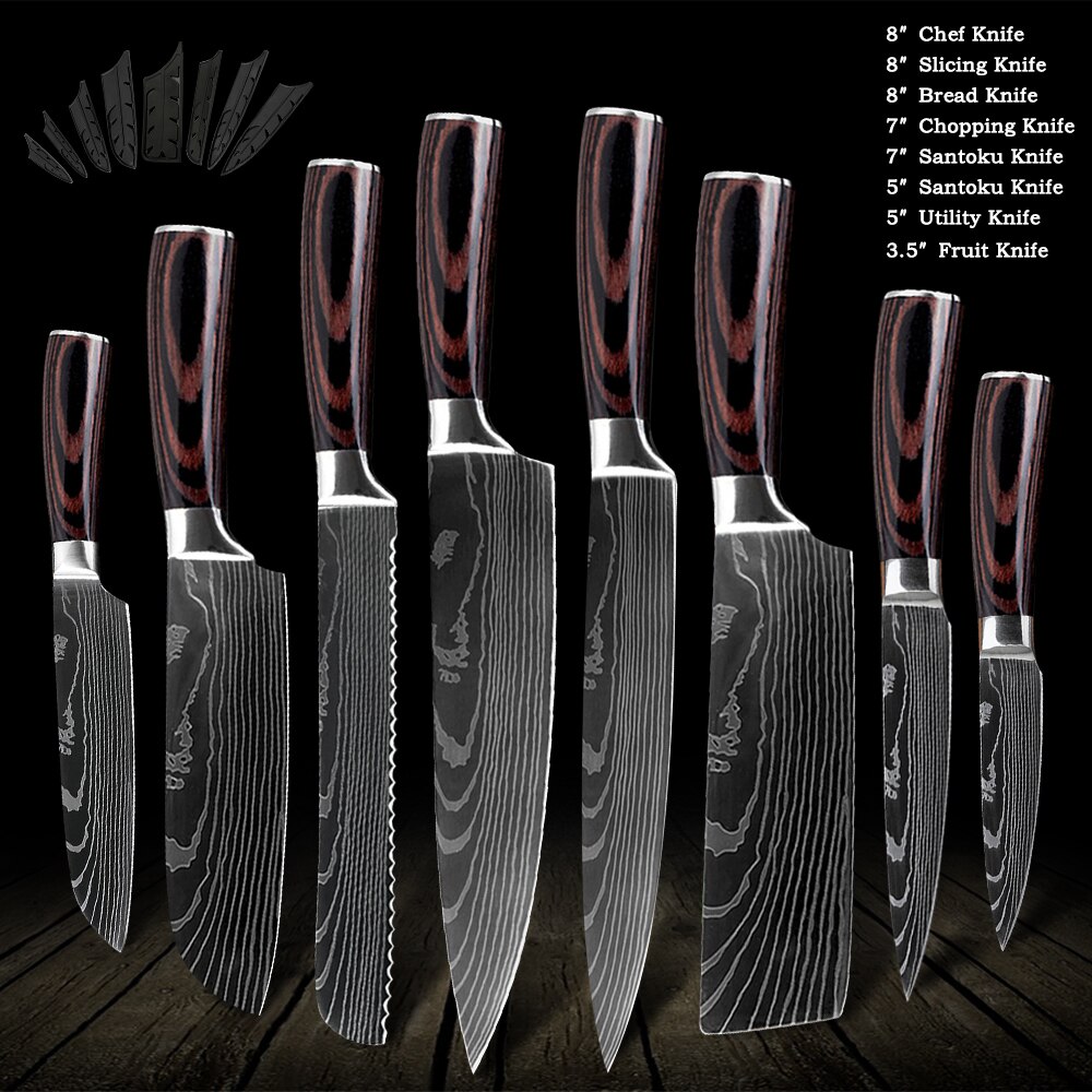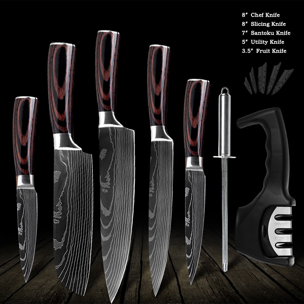 QING Kitchen Knife Set Non-stick Chef Knives Set High Carbon Stainless Steel Cooking Paring Cutting Slicing Cleaver