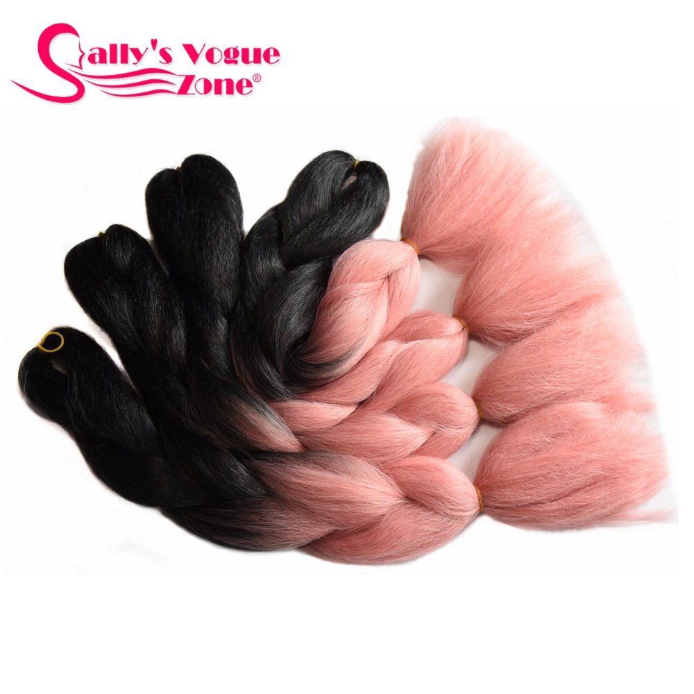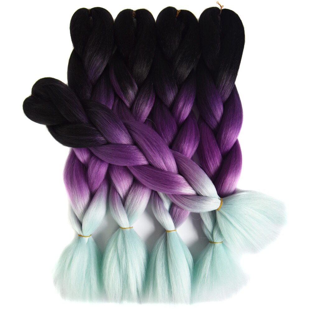 Sallyhair 24inch Ombre 3 Tone Black Purple Silver Grey Color Synthetic Braiding Hair Extension Colored Bulk Hair