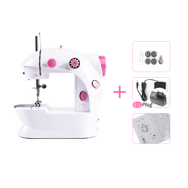 Sewing Machine Portable Household Mini Sew With Foot Pedal Night Light Double Thread Pink Colour For Tailor Table