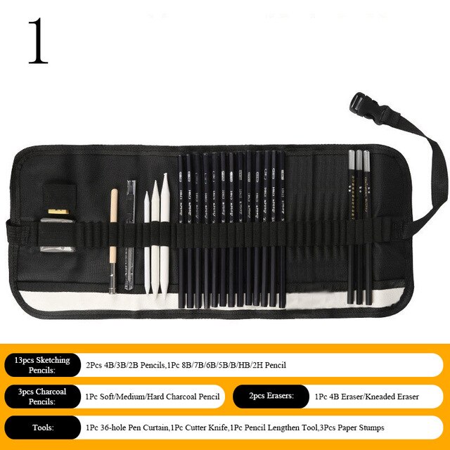 Sketch Pencil Set Sketching Drawing Kit Wood Pencil Bags Students Drawing Art Supplies Office Stationery