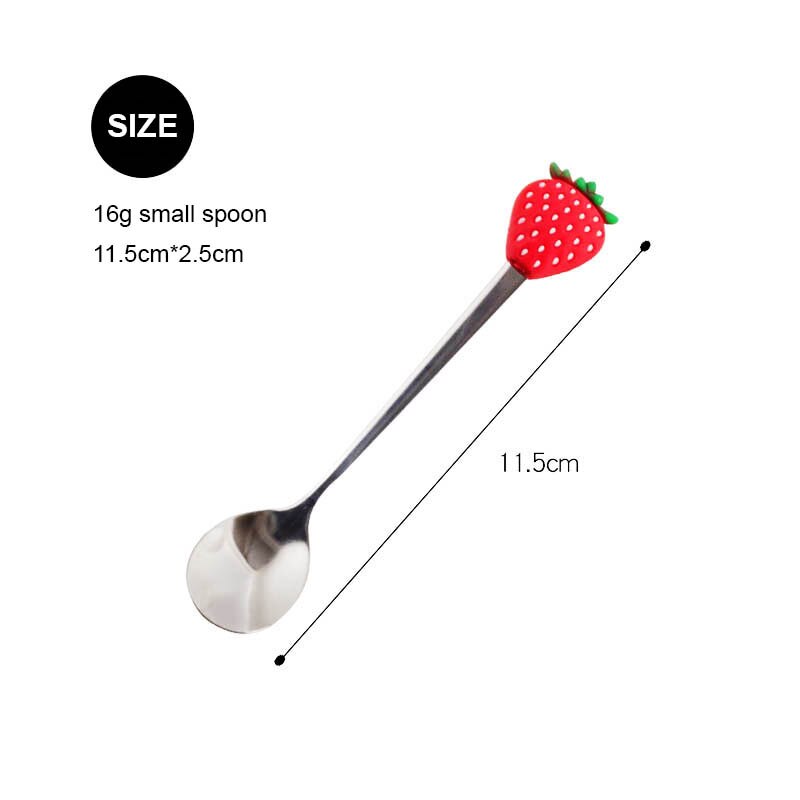 Stainless Steel Fruit Fork Dessert Coffee Spoon Color Fruit Pattern Mixing Scoop Tableware Cutlery Dinnerware Set Kitchen Tool