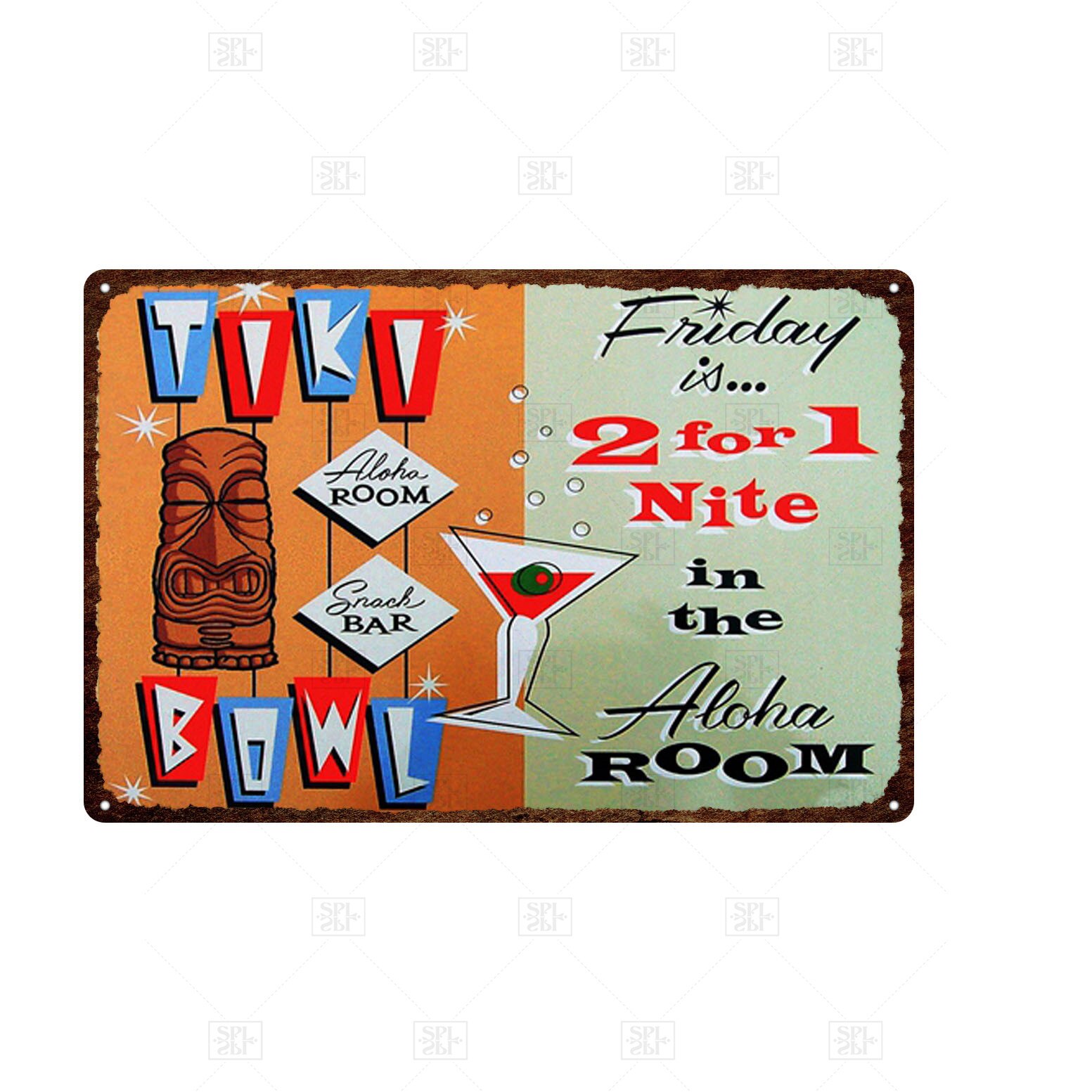 Tiki Bar Wall Decor Metal Sign Plaque Metal Summer Tiki Sign Metal Plate for Tiki Bar Beach Bar Decorative Iron Painting