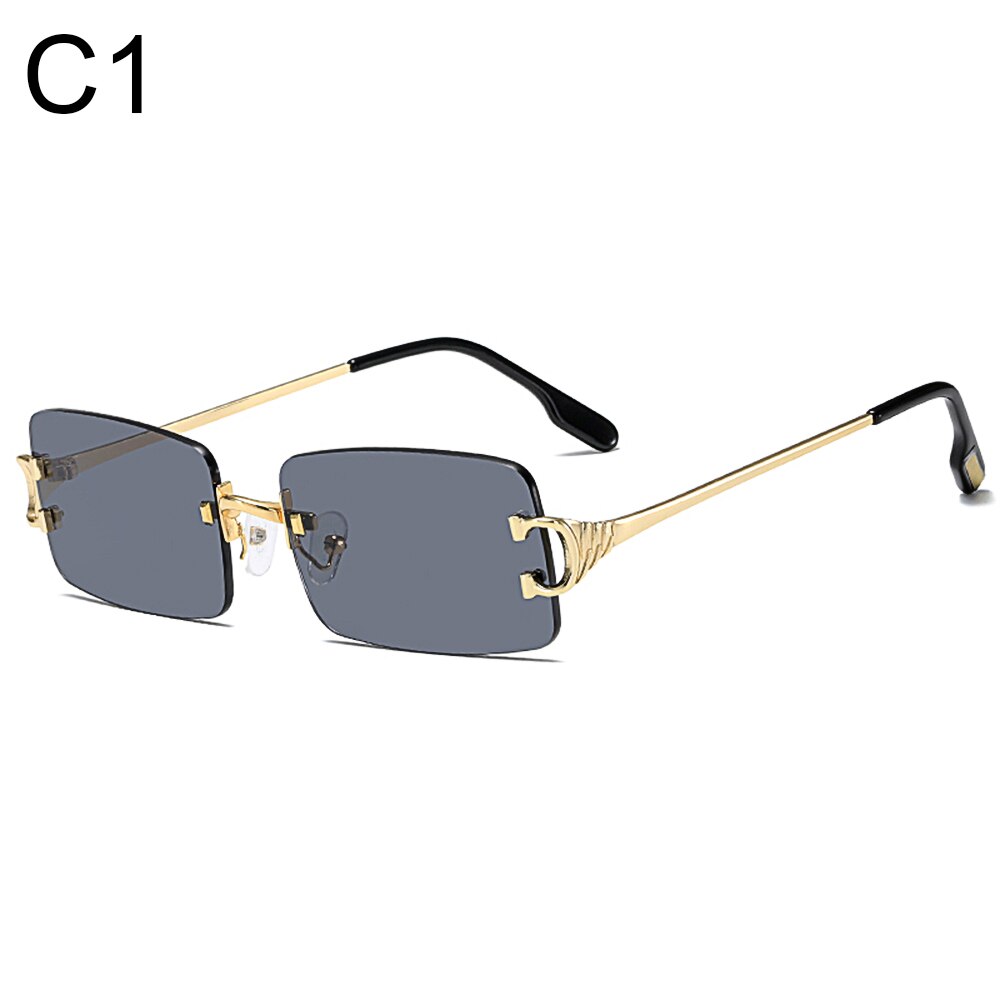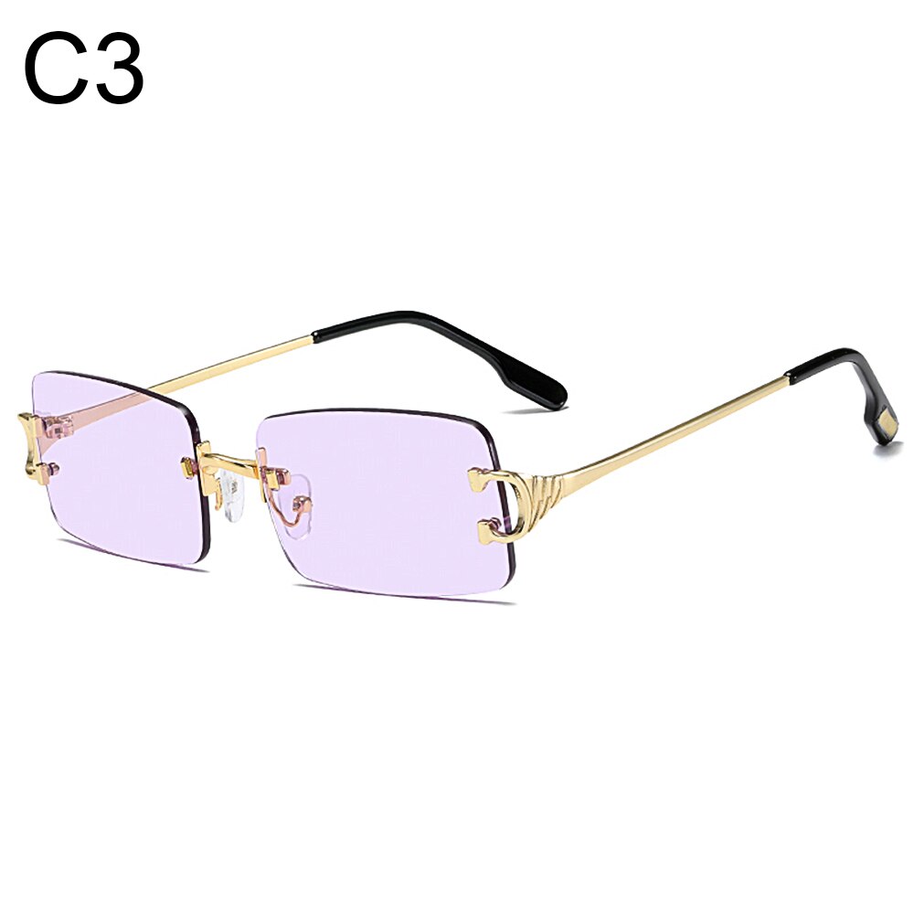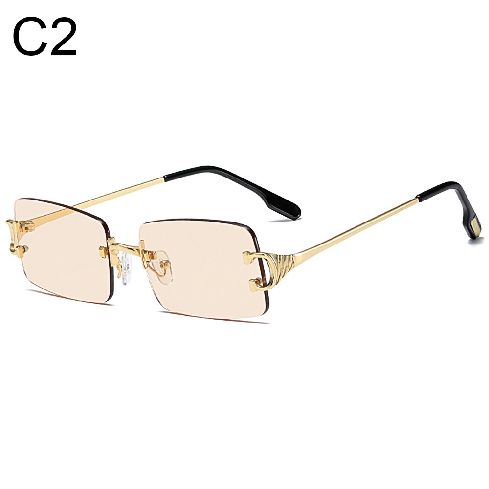 Tinted Lens Glasses Frameless Rectangular Sunglasses Men Women Rimless Outdoor Metal UV 400 Eyewear