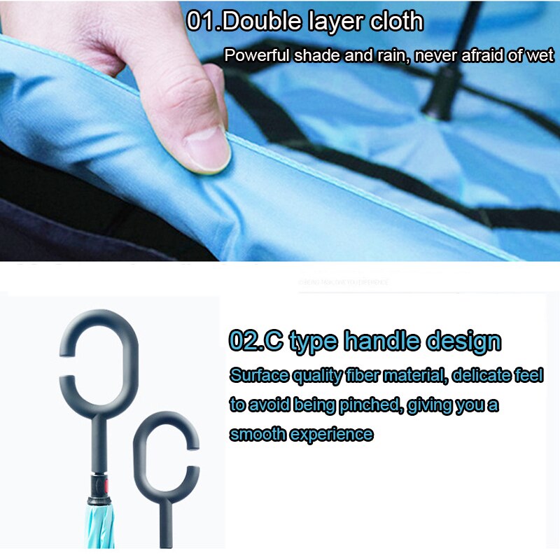 Windproof Reverse Folding Umbrellas Double Layer Inverted Umbrella C Handle Stand Rainy And Sunny Women Men