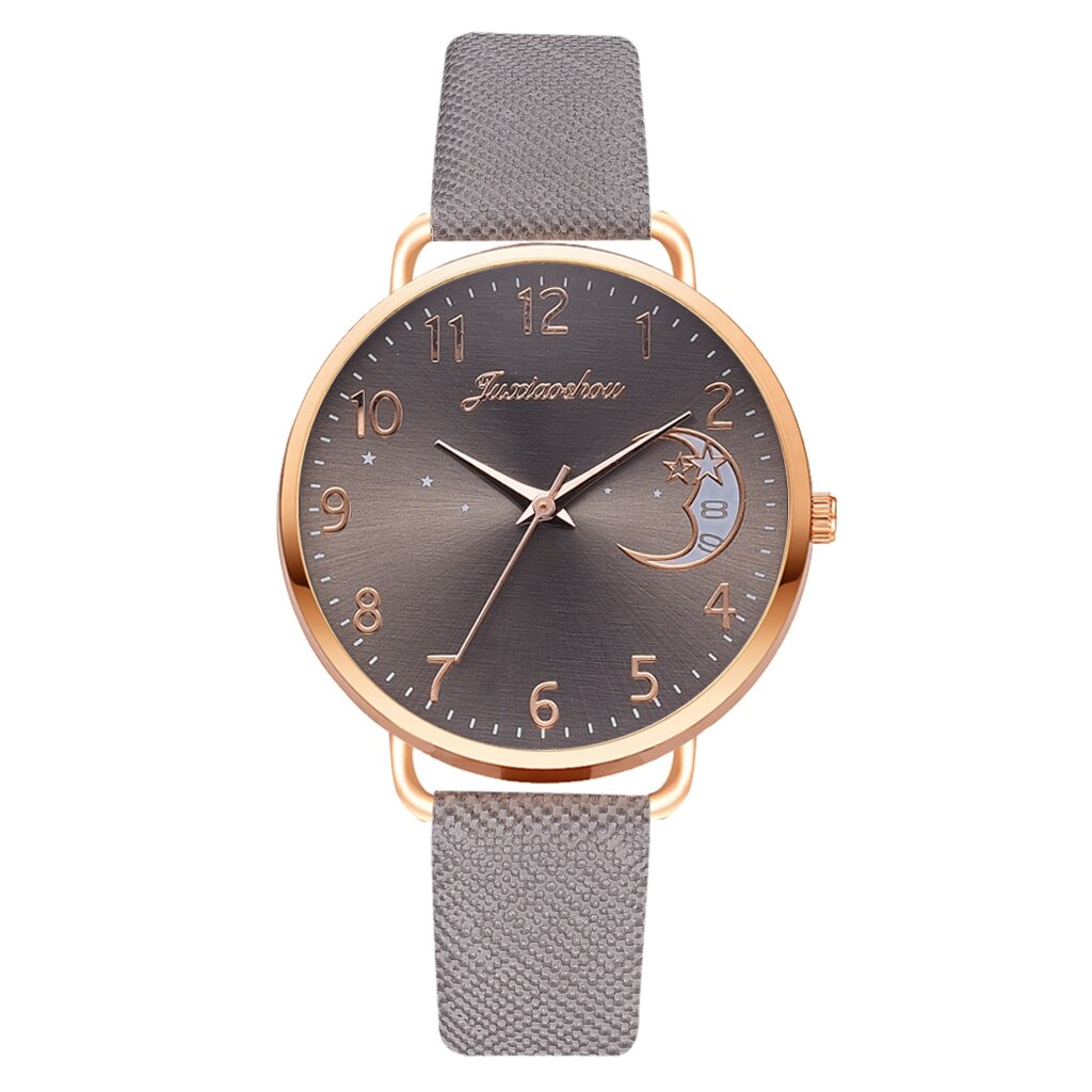 Women Watch Moon Numbers Dial Bracelet Watches Set Ladies Leather Strap Quartz Wristwatch Women Female Clock Relogio Mujer