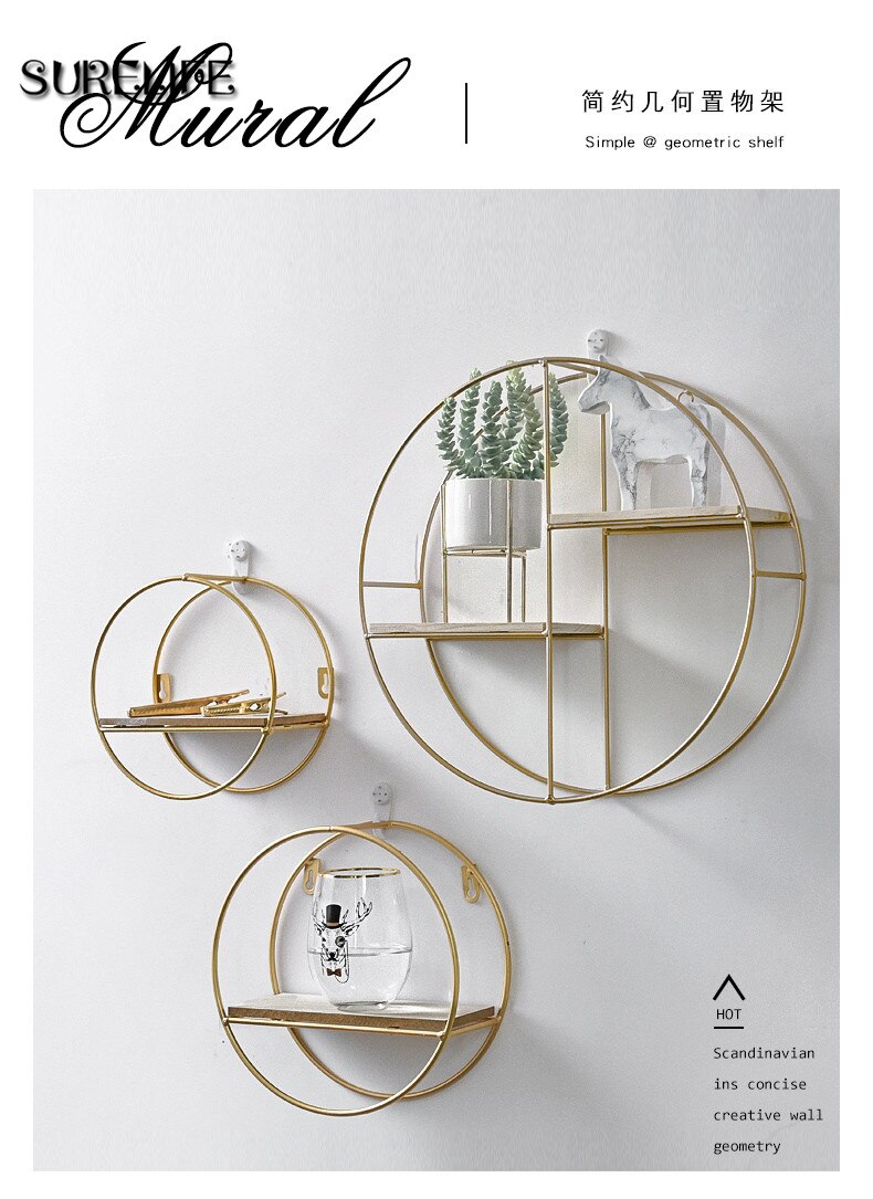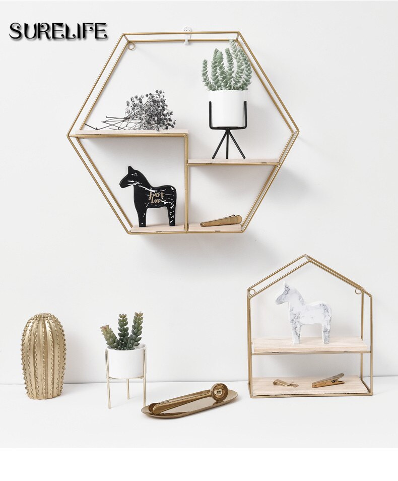 Wooden Gold Storage Racks Hanging Decor Storage Box Flower Pot House Storage Rack Wall Book Figurines Display Crafts Shelves
