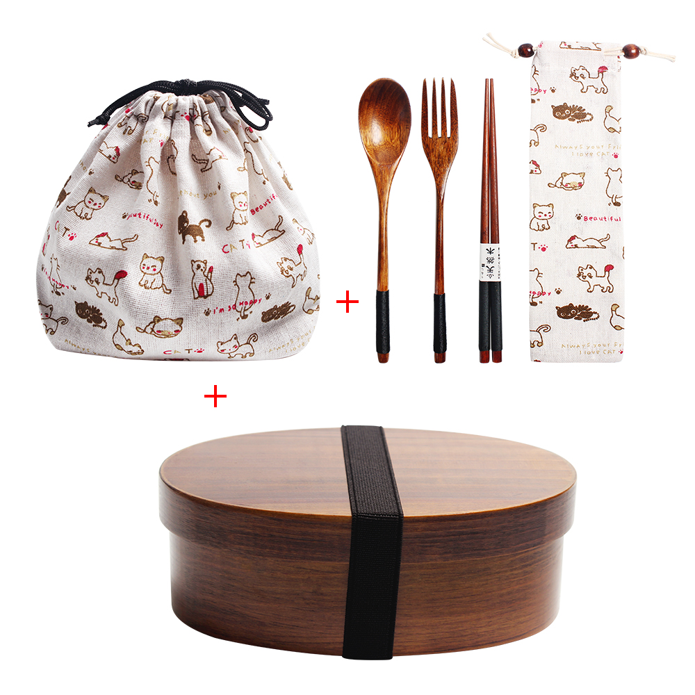 Wooden Lunch Box Kit Japan Style Bento Box for Kids Sushi Container 1Layer Tableware Student Wooden Lunch Box with Compartments